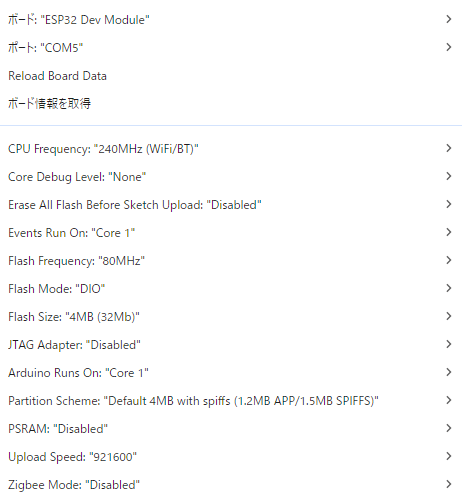 ボードの設定や、ポートの設定、その他の設定を行います。