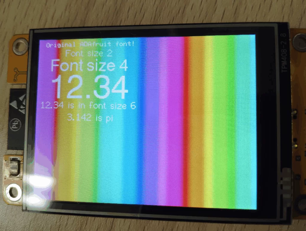 tft.drawString(" is pi", xpos, ypos, font); // Continue printing from new x position