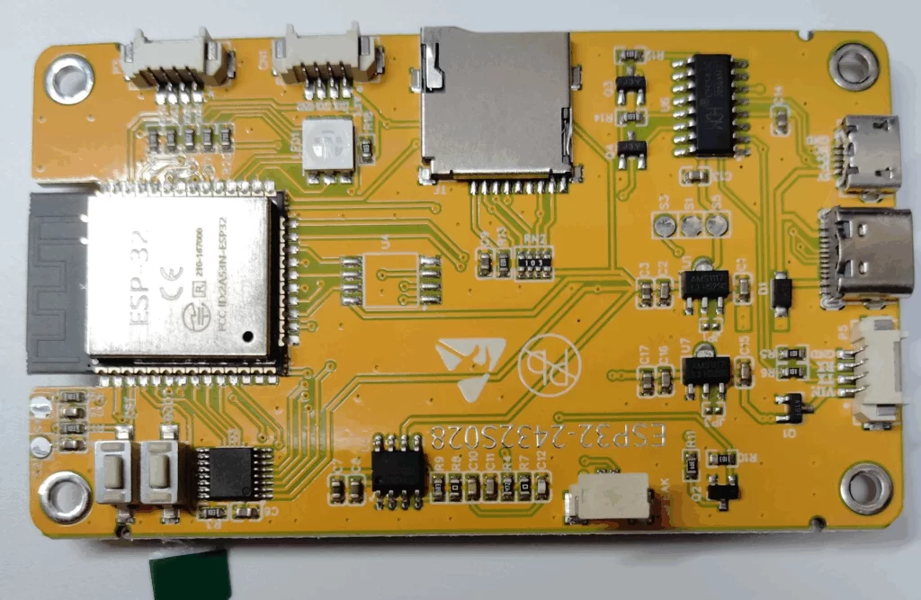 この裏面黄色基板はいろいろな種類があり、だいたいは「ESP32-2432S028」で調べれば出てくるのですが、このバージョン何かがちょっと違うのです。