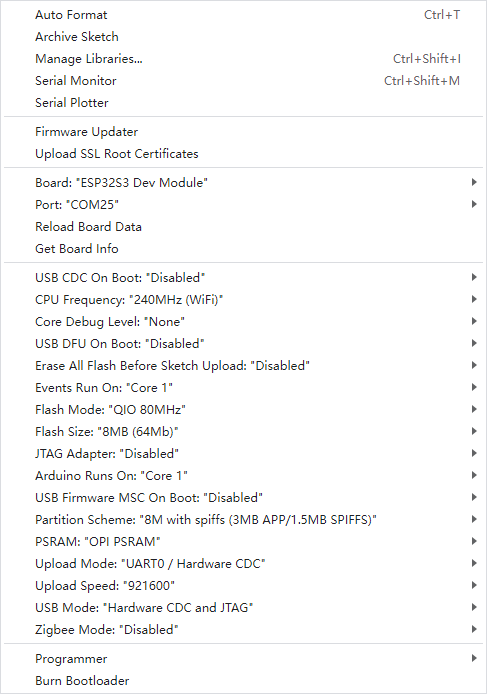 ESP32-S3の設定等