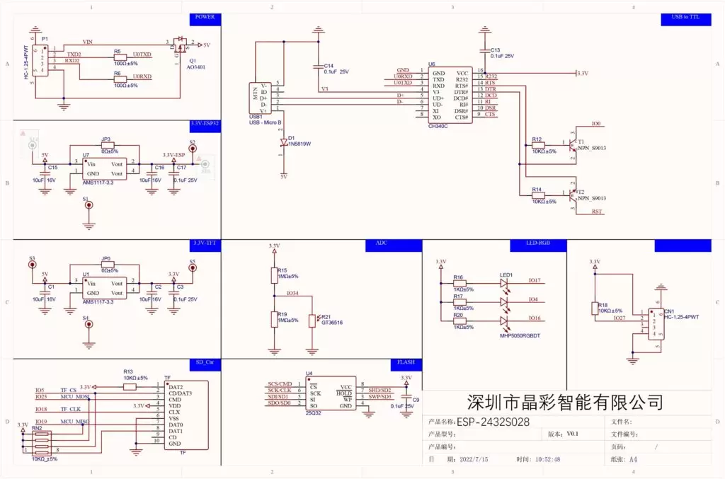 ESP32 2.8インチ タッチスクリーン開発ボード 完全仕様書(ESP32-2432S028)v2.3
